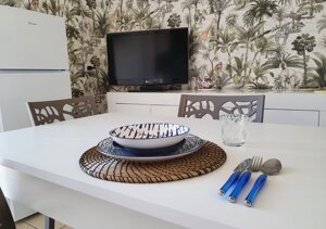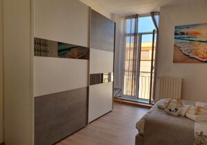 Ampia e luminosa camera con balcone che si affaccia in una tranquilla e caratteristica stradina del centro storico. Dotata di un ampio tavolo con quattro sedie, piano cottura, forno, frigorifero, lavatrice, lavastoviglie, TV, completa di stoviglie, pentolame ed asse e ferro da stiro. In questa camera è presente l'accesso al bagno.